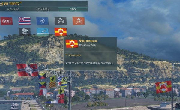 Симпатичный флаг. Получил его. Приятный бонус. Редко леста берет вот так и раздает подарки, пусть и не значащие почти ничего и в игру не приносящие, кроме эстетического удовольствия. А название классное: ФЛАГ ВЕТЕРАНА. Я ветеран, е-мое, в сторону, салаги!))))